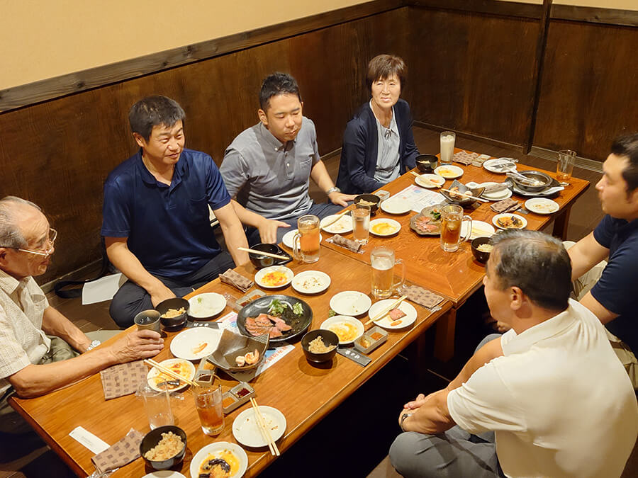 その日の夜は、竹乃家で掃除に学ぶ会の暑気払い。生ビールを飲んで大いに語って盛り上がることができました。心ある善友の集まりはそれだけで最高の喜びです。