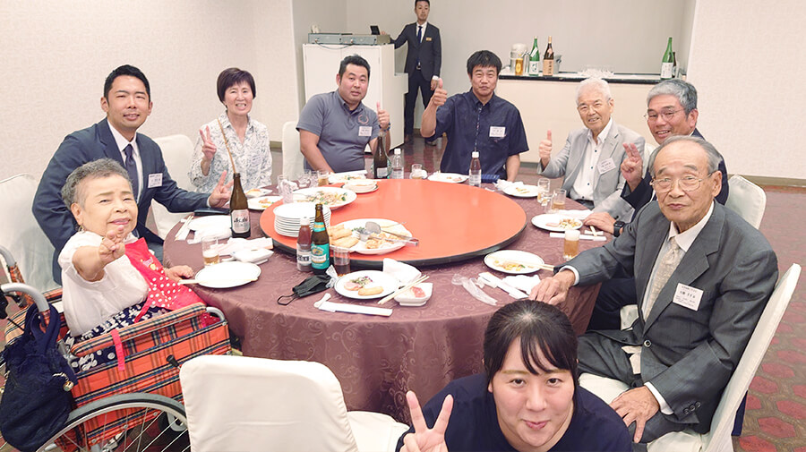 第2部の交流会は、利会長のお祝い挨拶と乾杯で始まり、まずは腹ごしらえ。その後テーブルごとに自己紹介と近況報告タイム。一人2分以内と司会が言っても、久しぶりに会う仲間への報告時間は長くなる。酔いの勢いもあるが掃除仲間との楽しい思い出話は尽きることなく、一升瓶も5本空になって、あっという間に懇親時間が過ぎて閉会の時間となった。