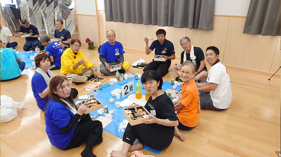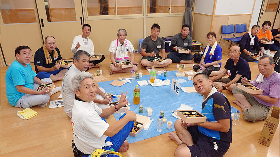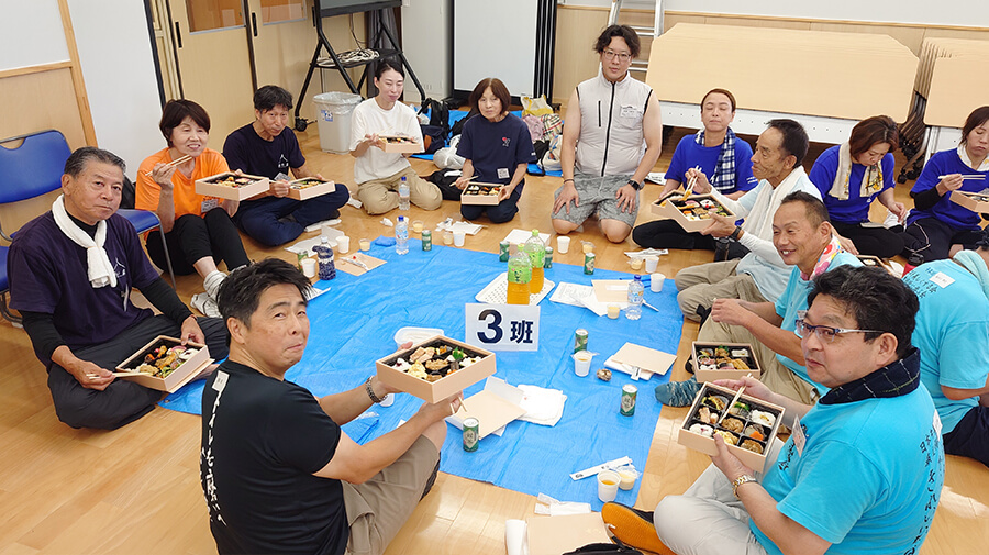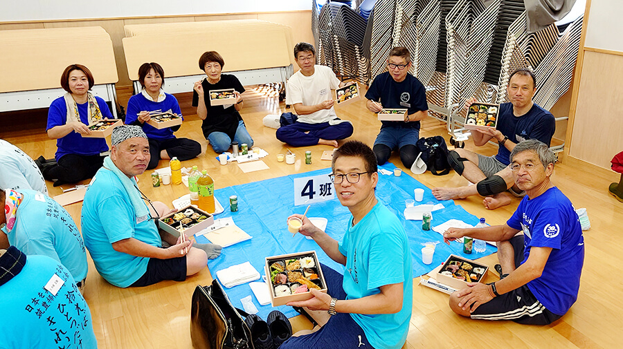トイレをピカピカにした後は、全員でお楽しみの食事交流会である。奮発した1000円の弁当だったので、中身が豪華で量もしっかりあり、皆さんとっても美味しいと大満足していただいた。