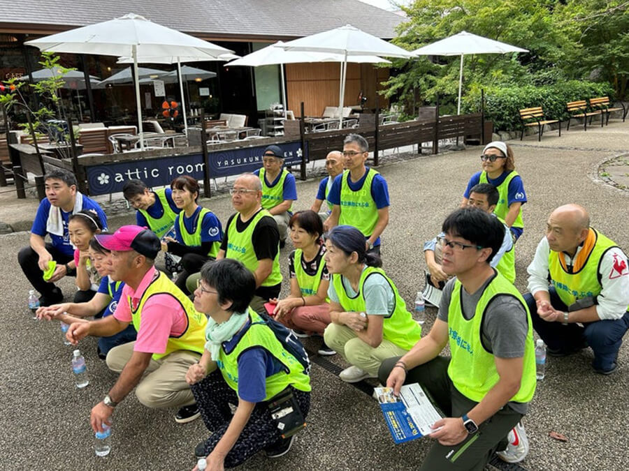 朝、内苑の能楽堂前に集まった人数は23名です。遠くは宮城県多賀城市から小畑ご夫妻が夜行バスでみえられました。頭が下がります!