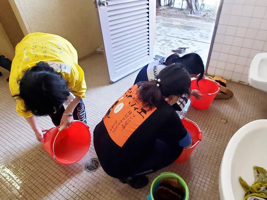 「床面をたわしで磨くのは初めて」「掃除の前に中の備品を全て出す」「長年こびり付いた汚れはこうしたら綺麗になる」「床面のテープのりを剥がすのに根気がいる」などの感想をいただきました。