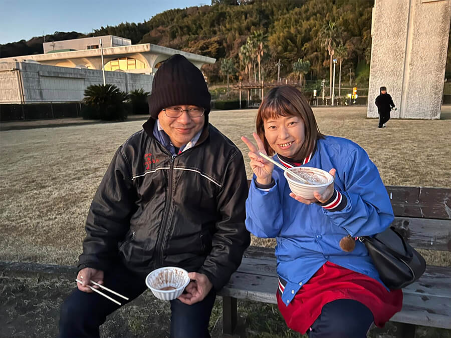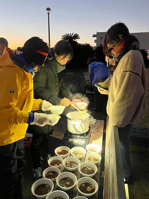 お汁粉を作っていただき、寒さの中にもホッと温かく、コーヒーで締めでした。