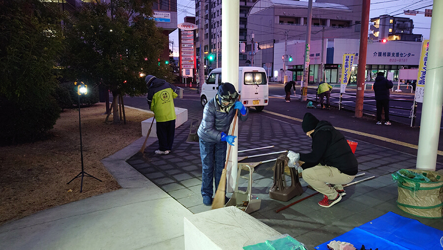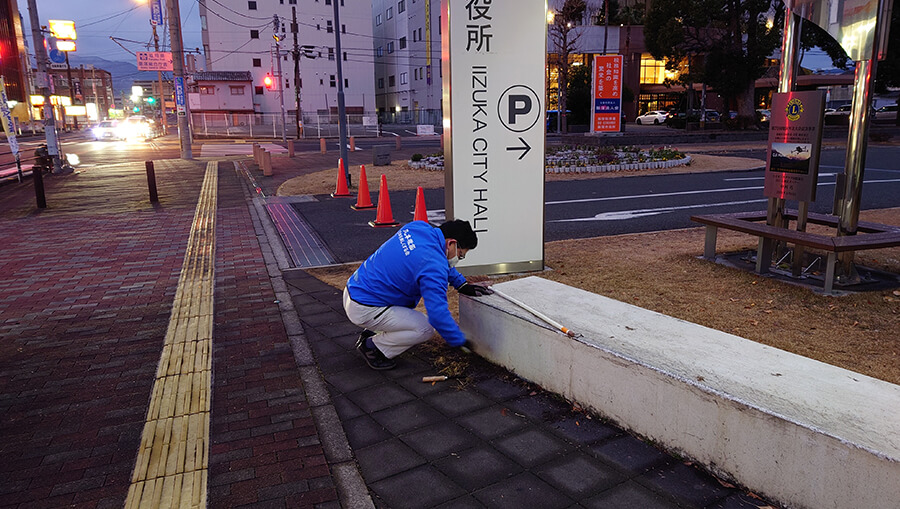 1月11日午前6時45分より、今年最初の心磨きとして、飯塚市役所前の街頭掃除を行いました。