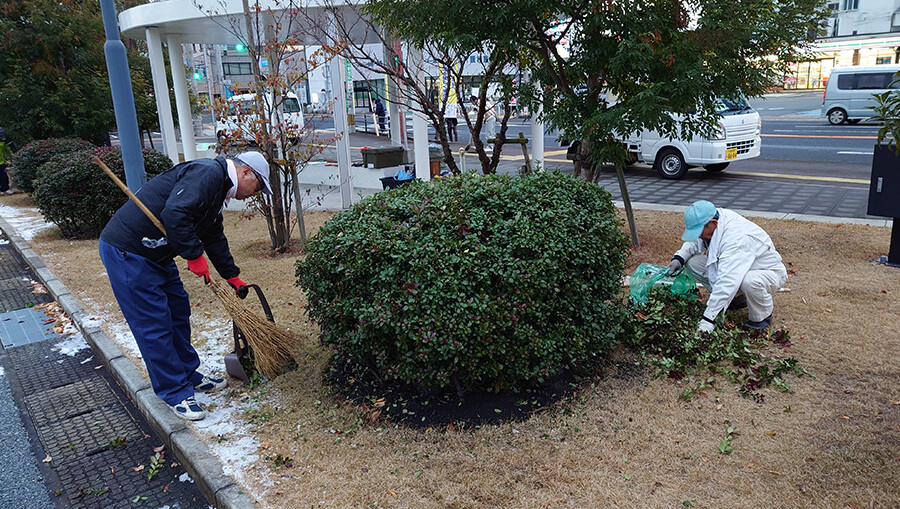 相談役が、際(キワ)を美しく仕上げることと、そのやり方を点から線へと徐々に広げていくことを言われてありますが、約1時間の街頭掃除後は、寒気の中に然として整った目の前の景色が心を引き締めてくれると同時に、充実感が湧いてきます。