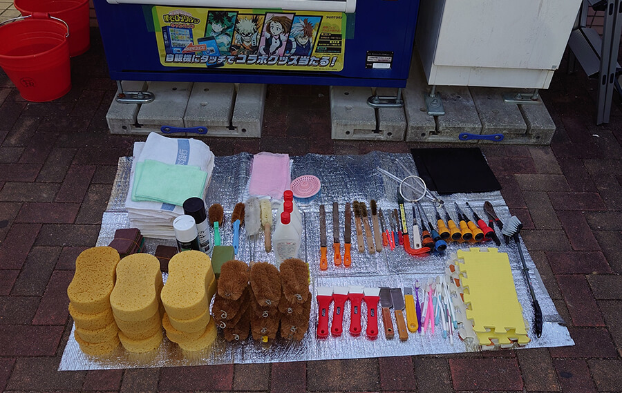 一年振りの掃除場所となり、便器の表面は管理人によって綺麗に維持されていて感心しましたが、小便器の水越を外すと、尿石が溜まって悪臭が漂ってきます。そこで、前夜にクエン酸処理をして翌日の掃除に備えました。