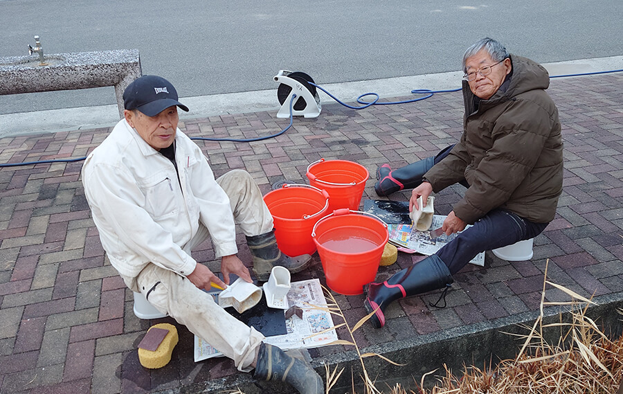 道具を水洗いして後片付した後に、お湯を溜めたバケツで最後の手洗いをすると、かじかんだ手に感覚が戻り、お湯のありがたさが身に沁みて分かりました。