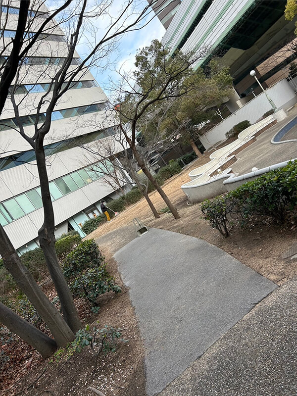 2025年3月8日(土)7時〜、大阪の中心部の周辺会社員の憩いの広場。