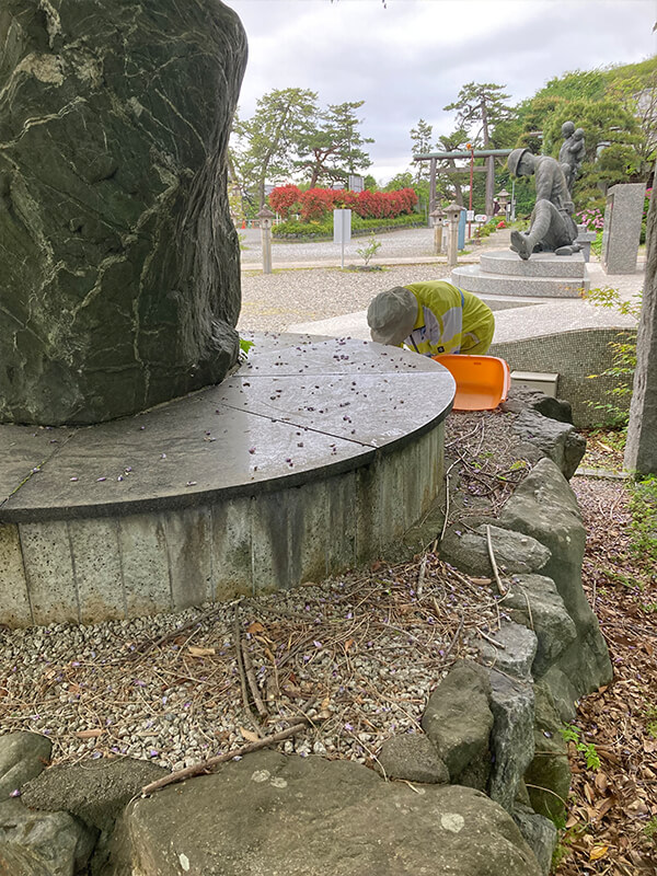 今回は、花塚のお掃除をさせて頂きました。落ち葉拾いから始まって周辺の草むしり・台座の水拭きとさせて頂き、見違えるほど綺麗にさせて頂けました。