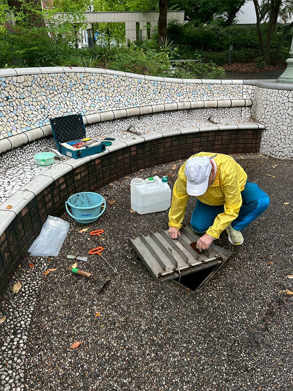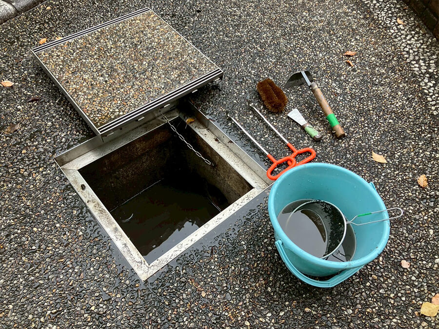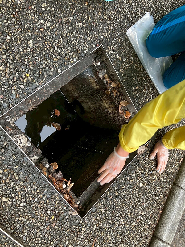 公園内のグレーチングを徹底清掃をして、落ち葉はきをしました。