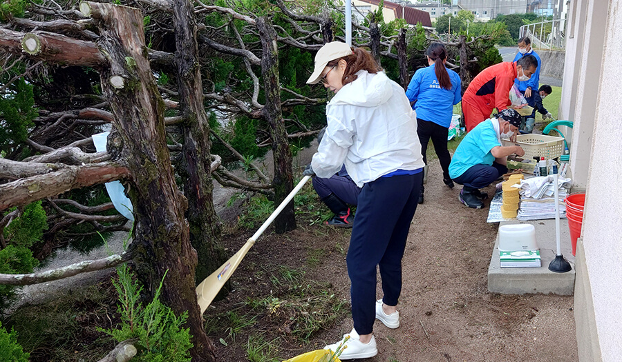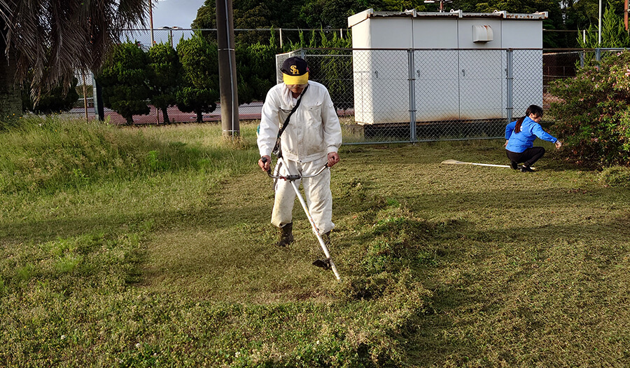 5時30分には大野城市から酒井先生、土居代表が既に現地に到着されて、草刈りを始めてありました。頭が下がります。