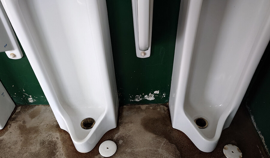 2年振りとなる注水のない男子トイレの汚れはすごく、しり込みしそうになりましたが、福岡からの川口さん、池田さん、永井さん、中尾先生が、サンドメッシュと軽石とスクレーパーを使って気合を入れて尿石を落としてくださったお蔭で、40分後にはピカピカになりました。