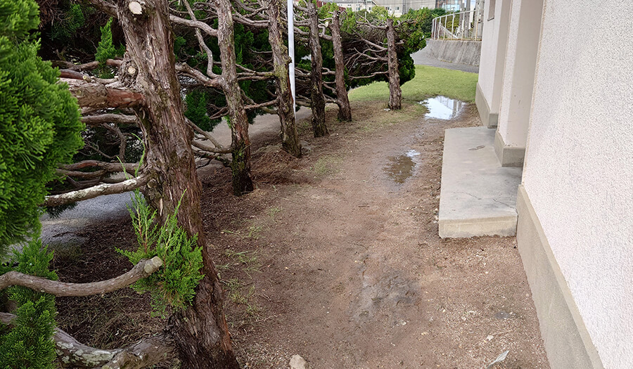 来た人から銘々に、トイレ周りの草取と草刈りに取りかかってくれます。あっという間に入り口前の雑草や縁石沿いのペンペン草も綺麗に無くなり、心を落ち着けてからトイレ掃除開始となりました。