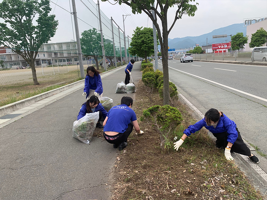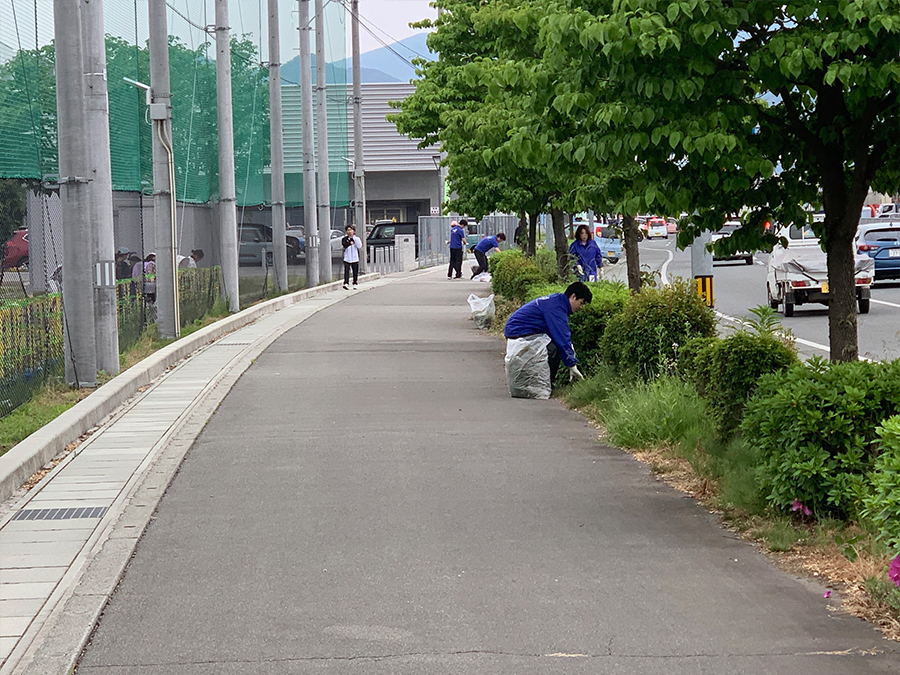 昨年は毎月4週目の土曜日朝に山形掃除に学ぶ会で実施していた街頭清掃を、530運動として山形駅前を大勢の社員で参加実施しましたが、今年は例年実施している会社近くの小学校の周辺を中心にゴミ拾いと植込みの除草を実施しました。また拠点でも事務所周辺のゴミ拾いを実施しました。ちょうど通学時間にあたり学校へ向かう生徒さんと清々しい挨拶を交わしながら掃除ができました。