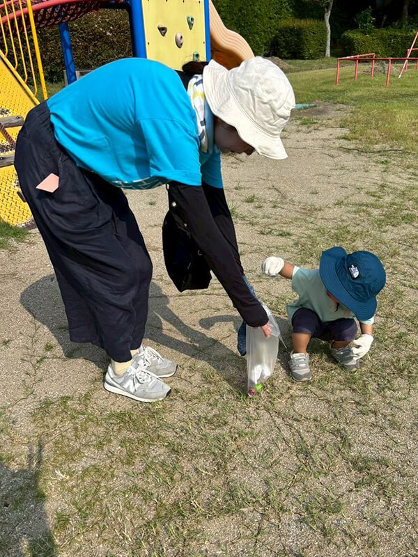 朝、子どもから「公園でゴミ拾いして遊ぶのー?」と聞かれ、ゴミ拾いが遊びになっていて嬉しく思いました。