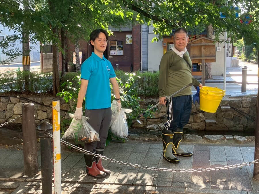 四条大橋では、ガムをスクレイパーで取ったり、柵のしたで伸びた草を取ったり、暑さと戦いながらきれいにしました。川掃除では、高瀬川に住む生き物(サワガニや蛇、小さな魚など)の住処を大切にしながら、きれいにしました。ガラスの瓶や貴重品等が落ちていることもあり、慎重にお掃除してくださっていました。