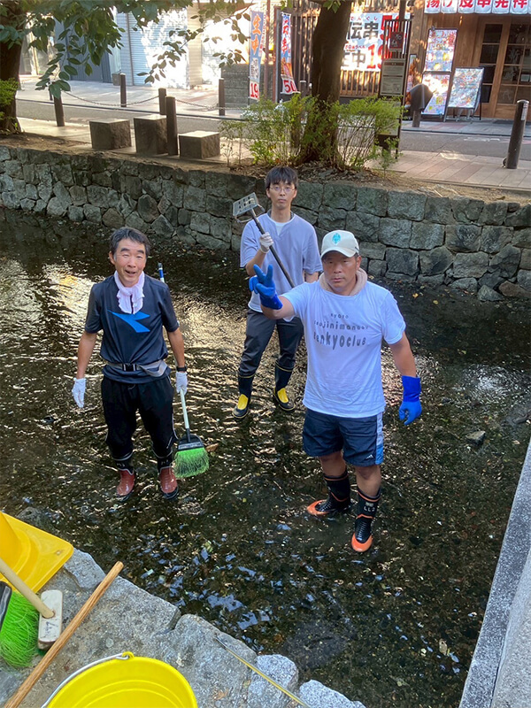 排水溝のメンバーは大量の吸い殻や泥を掬い上げ、ゴミを分別。嫌な臭いも気にせずに励みました。それらを取り除くことで嫌なにおいがなくなり、木屋町はいつもさわやかな風が吹いています。