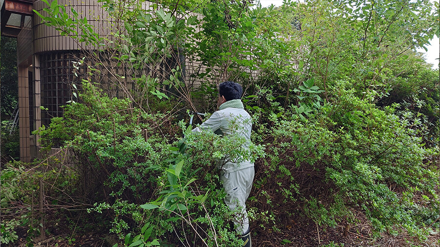 「やすらぎの広場」とは名ばかりで、現状は雑木と雑草が生い茂った林になっていました。