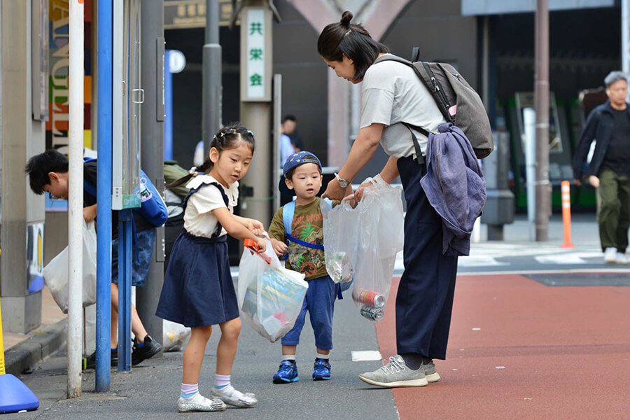 最初は恥ずかしがっていた子供たちも、ゴミを拾いながら自然と打ち解けていました。