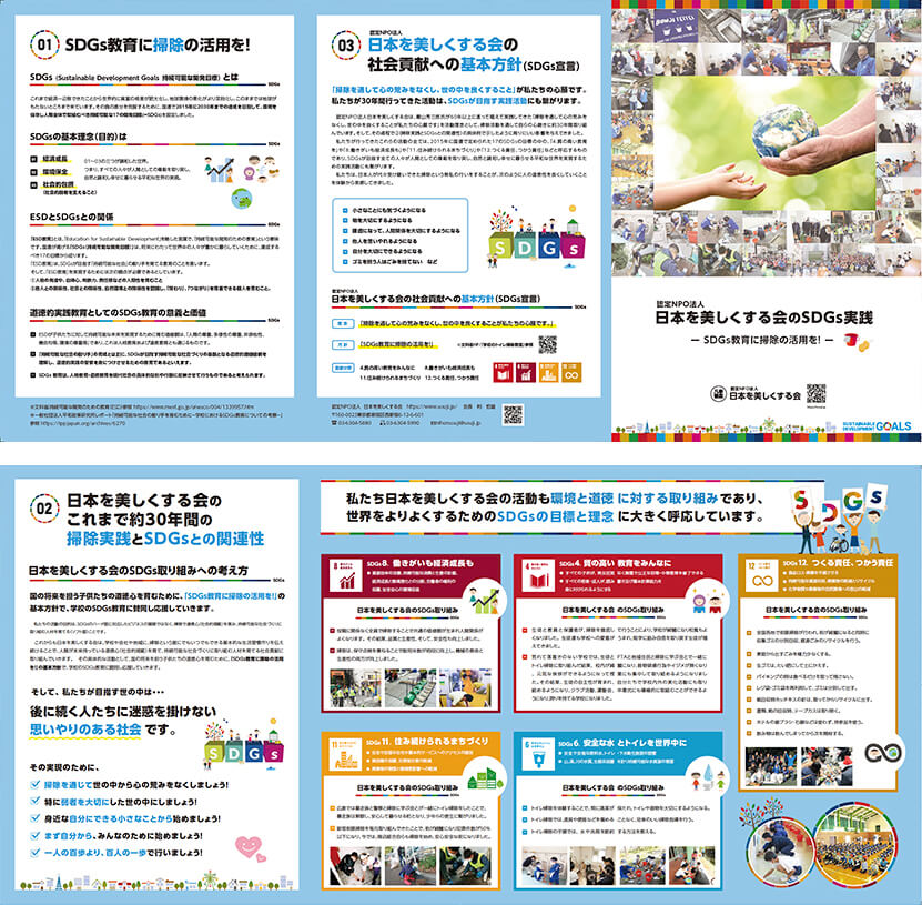 特に学校では、SDGs教育が盛んに取り上げられるようになってきましたが、具体的な授業実践プランに困ってあるようです。ですから、掃除道によるSDGs実践を説明したリーフレットは、学校の実情に応えSDGs教育に貢献できると思います。さらに、リーフレットを通じて当会の目的と意義を世間に伝えていくことで、コロナ後に求められている人間性重視の生き方に繋がると考えます。