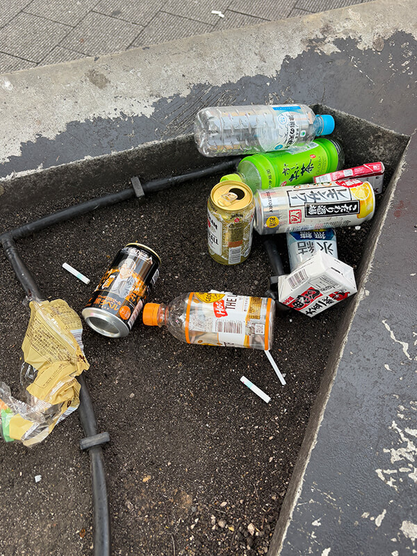 タバコの吸い殻やゴミをグレーチングに投げ込んで捨てるようです。