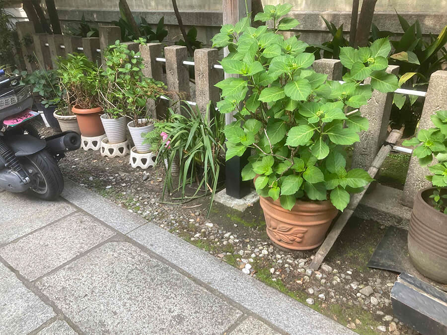 いつもは、商店街(参道)をお掃除させていただいておりますが、境内にお掃除道具運搬車両を駐車させてもらい、水を使わさせていただいております。