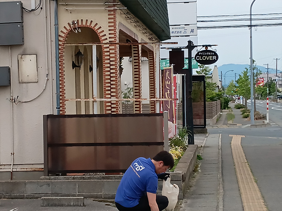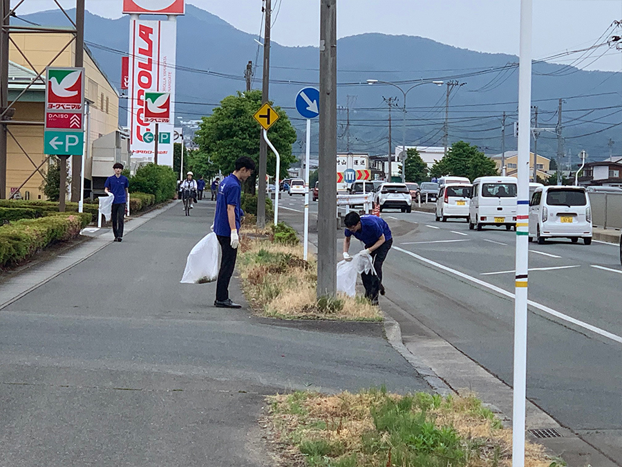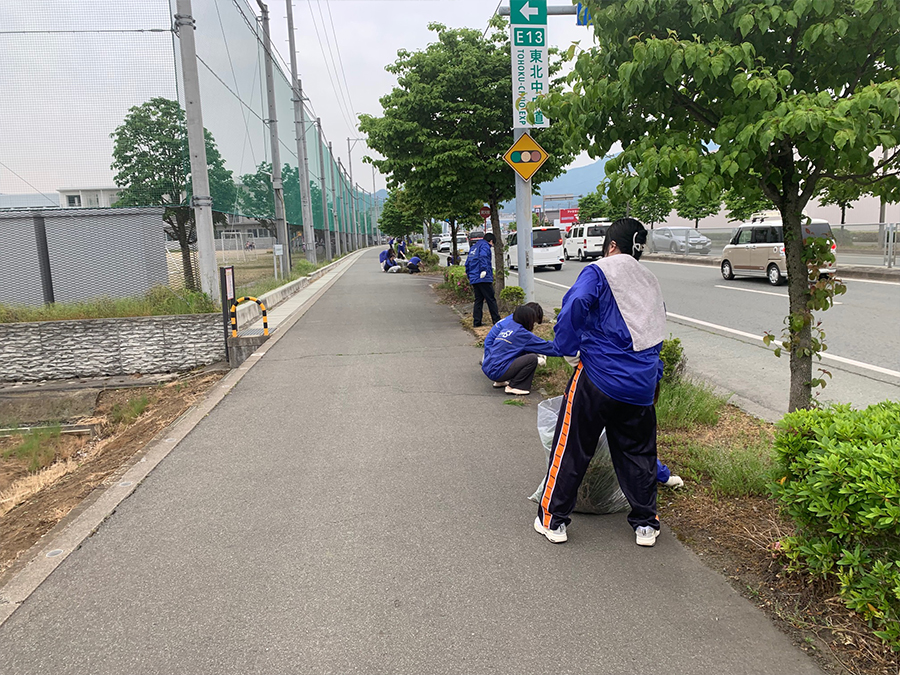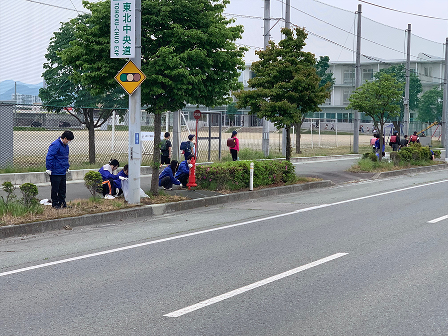 昨年は毎月4週目の土曜日朝に山形掃除に学ぶ会で実施していた街頭清掃を、530運動として山形駅前を大勢の社員で参加実施しましたが、今年は例年実施している会社近くの小学校の周辺を中心にゴミ拾いと植込みの除草を実施しました。また拠点でも事務所周辺のゴミ拾いを実施しました。ちょうど通学時間にあたり学校へ向かう生徒さんと清々しい挨拶を交わしながら掃除ができました。