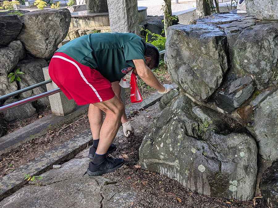 活動紹介 ホーム 活動紹介第138回彦根掃除に学ぶ会 第138回彦根掃除に学ぶ会 滋賀 彦根掃除に学ぶ会 境内清掃 2025.07.13 真夏のような暑さの中でのお掃除の会でした。 ここ暫く滋賀縣護国神社のお掃除をさせていただいており、今回は拓友碑をお掃除させていただきました。 参加者は6名で、2時間いい汗をかかせていただきました。 彦根掃除に学ぶ会 川崎 雅弘