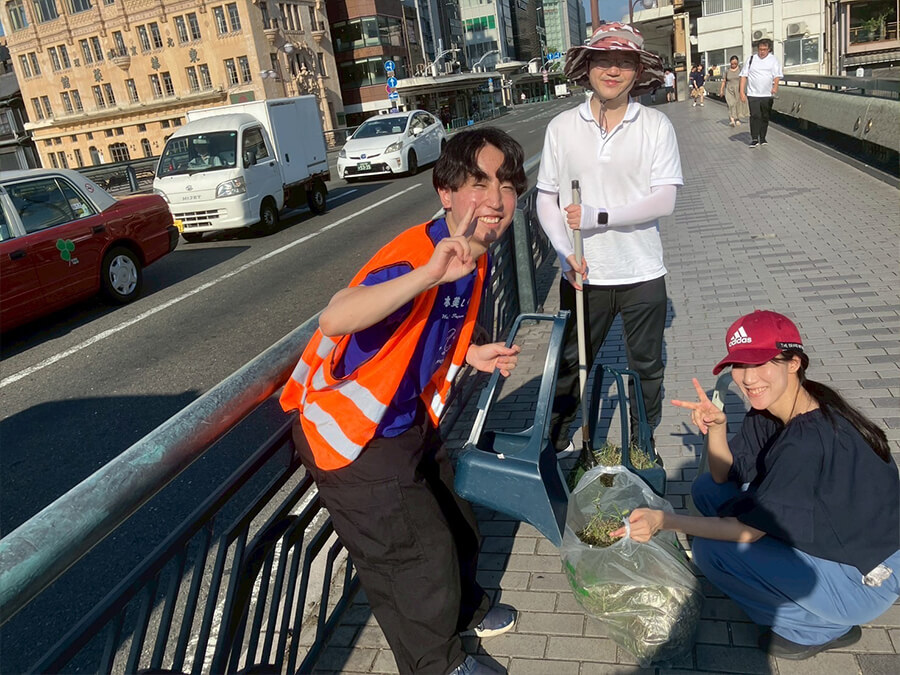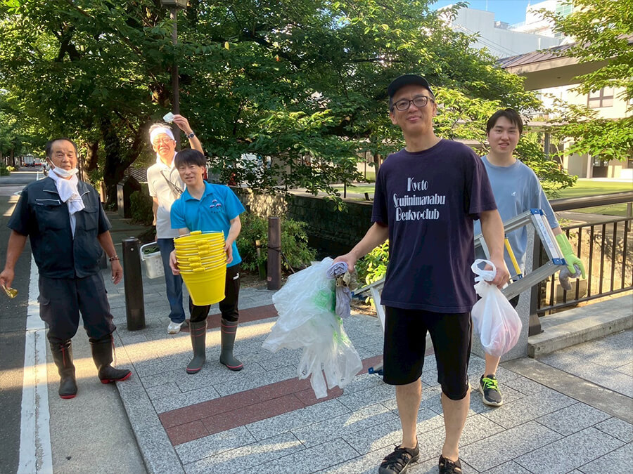 四条大橋では、ガムをスクレイパーで取ったり、柵のしたで伸びた草を取ったり、暑さと戦いながらきれいにしました。川掃除では、高瀬川に住む生き物(サワガニや蛇、小さな魚など)の住処を大切にしながら、きれいにしました。ガラスの瓶や貴重品等が落ちていることもあり、慎重にお掃除してくださっていました。