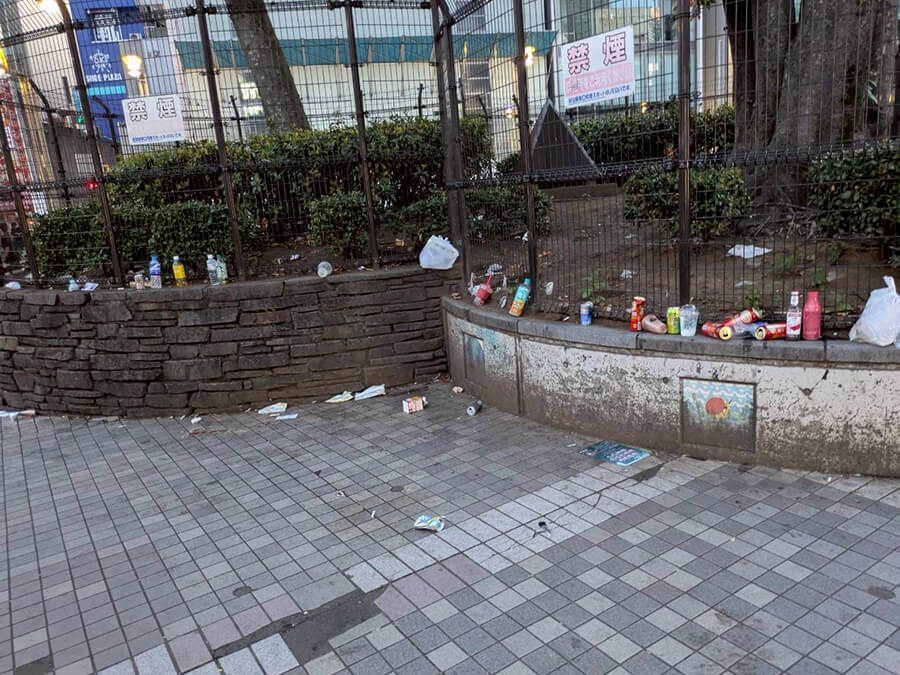 お盆休みで帰省している方も多いですが、新宿を楽しむ人も多いです。暑さもも戻り、このように飲料水の空き缶、ペットボトルが捨てられていました。