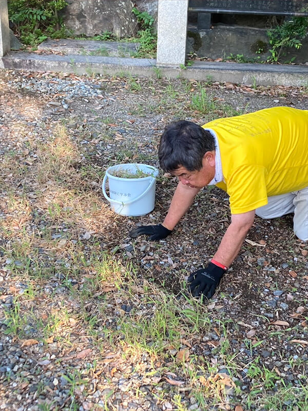 活動紹介 ホーム 活動紹介第140回 彦根掃除に学ぶ会 第140 回彦根掃除に学ぶ会 滋賀 彦根掃除に学ぶ会 境内清掃 2025.09.07 この半年間、滋賀縣護国神社のお掃除をさせて頂いておりますが、広い敷地のためなかなか行き届くとこまでできません。 今回は、銅像等記念碑の前の草抜きを中心にお掃除をさせて頂きました。 残暑厳しい中、二時間、楽しみながら必死に草と対話しながら行いました。 彦根掃除に学ぶ会 川崎 雅弘