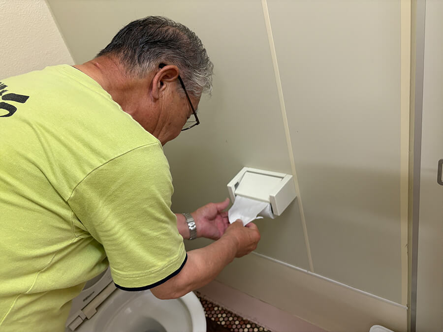 各班に分かれ、トイレを中心とした清掃に取り組みました。中でも「水漉し(みずこし)」担当班は、なかなか剥がれない尿石に2時間近く格闘する場面も。初参加の若手メンバーが「いい経験ができました」と語る姿には、“意味”を見出す姿勢がにじんでいました。
