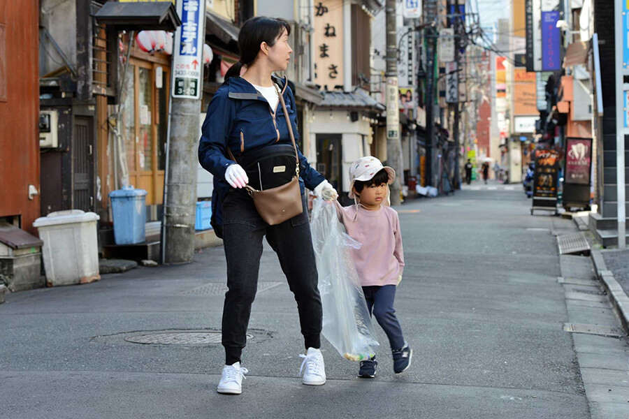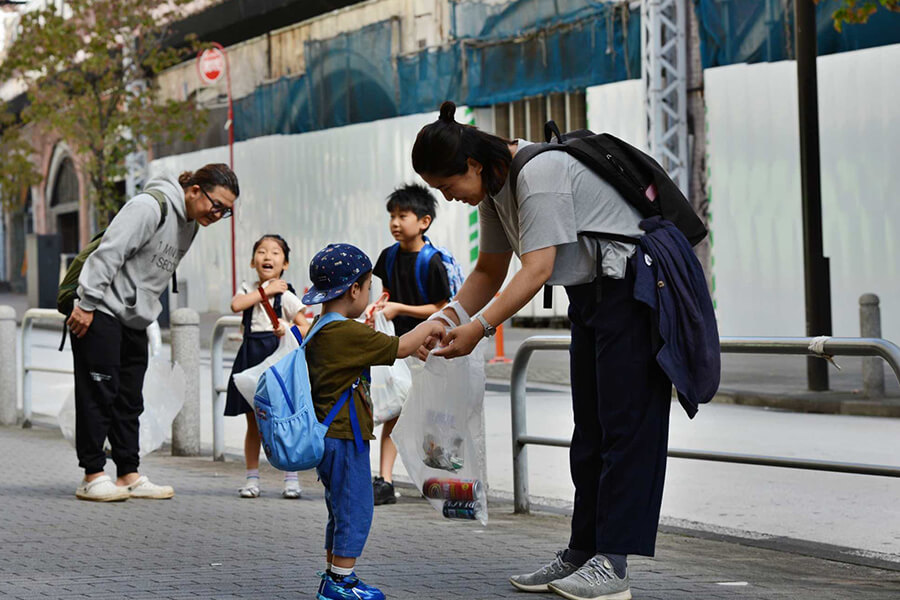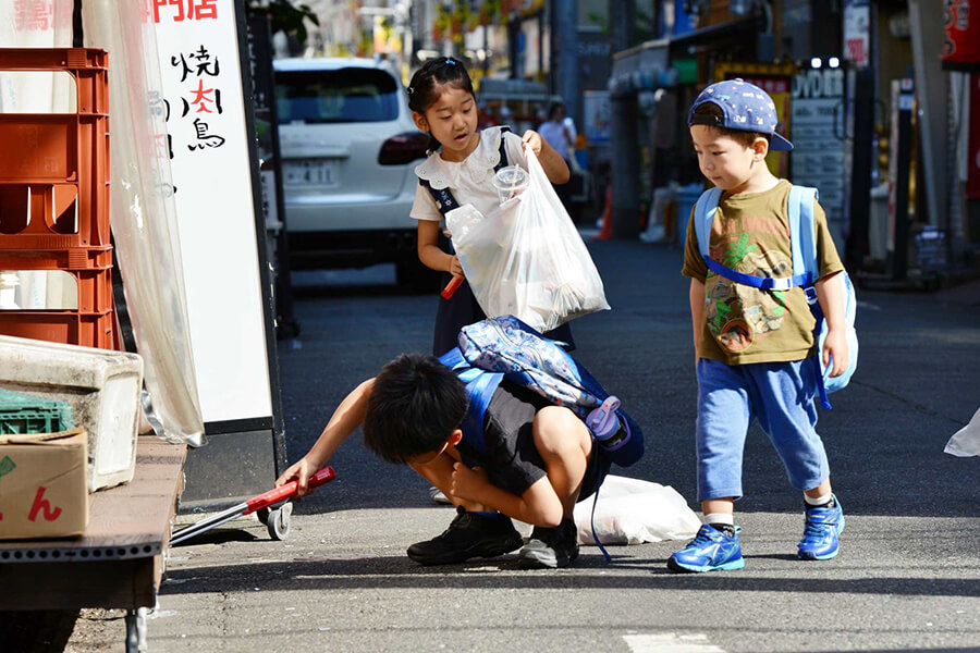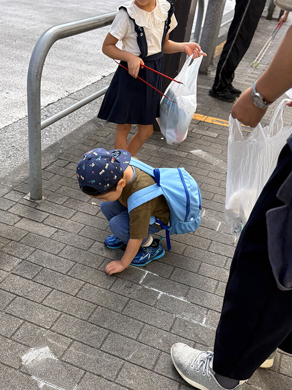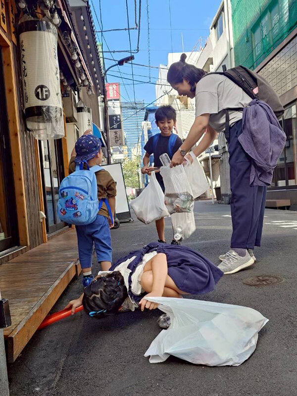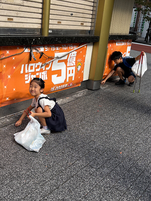 最初は恥ずかしがっていた子供たちも、ゴミを拾いながら自然と打ち解けていました。
