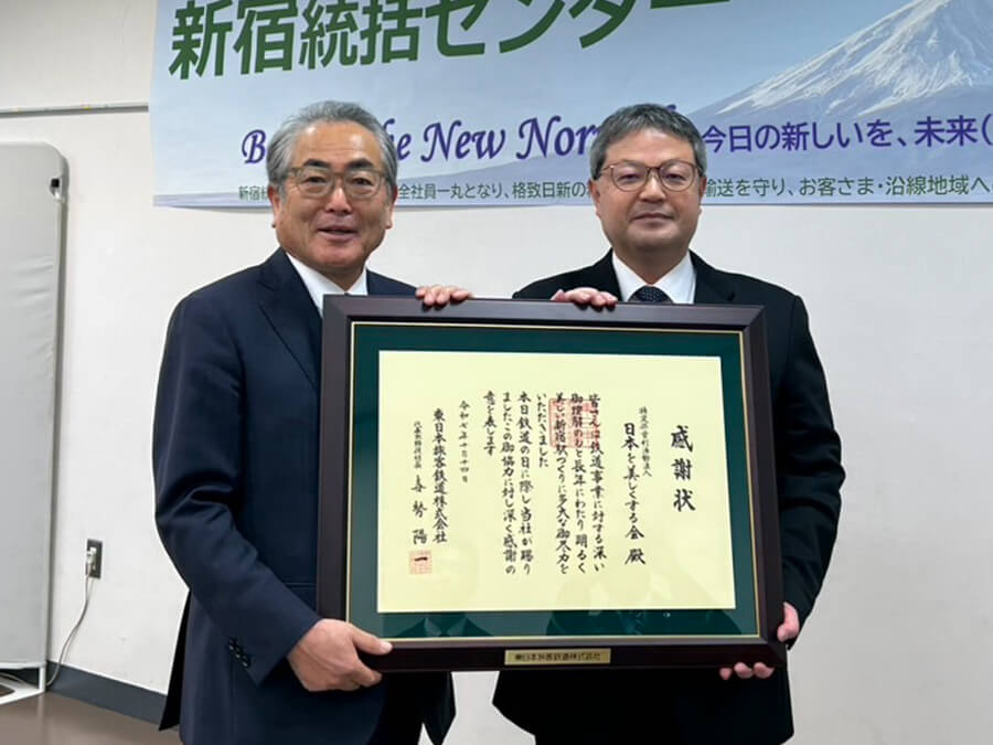 活動紹介 ホーム 活動紹介JR東日本様より感謝状をいただきました。 JR東日本様より感謝状をいただきました。 東京 東京掃除に学ぶ会 街頭清掃 2025.11.09 令和7年11月11日火曜日、JR東日本様より「JR東日本 社長感謝状」をいただいてまいりました。 冨田会長にもご足労いただき、無事にお役を務めさせていただきました。 平成15年(2003年)から始まった新宿街頭清掃にご参加いただいた、おひとりおひとりに感謝を込めて報告いたします。 東京掃除に学ぶ会 世話人代表 渡辺 栄司
