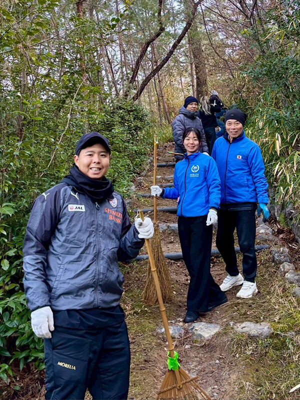 吉田山の山道には比較的多くの人数が入り、昨年から積もっていた落ち葉やその周りの草木の状態を見ながら、広い範囲にわたって山道の掃き掃除を行うことができました。