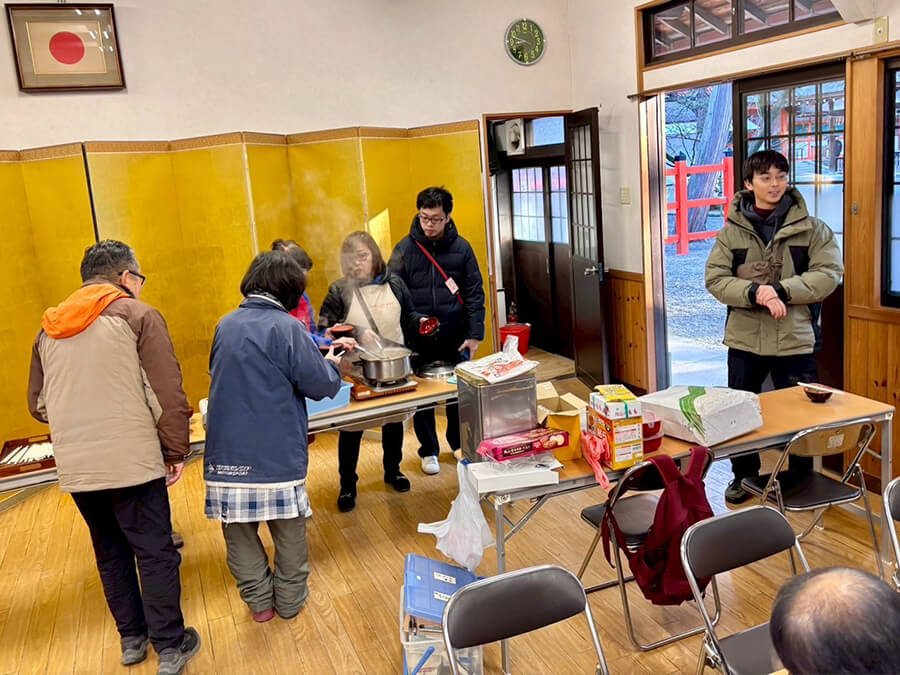 お掃除終了後には、例年どおり豚汁をいただき、冷え込んだ身体を温めながら、その日の流れを静かに振り返る時間となりました。豚汁は、毎年、学ぶ会の有志の方々が集まり、前日に準備していただいています。