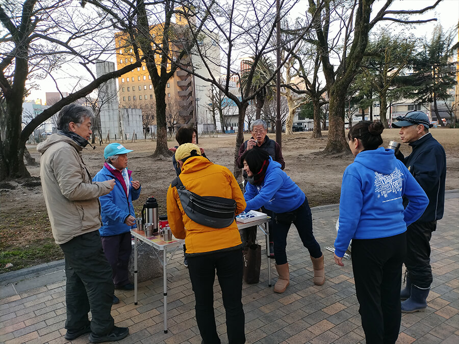 早い方は5時30分から公園の周りのゴミ拾いを始めています。