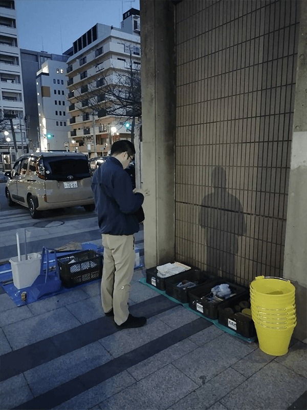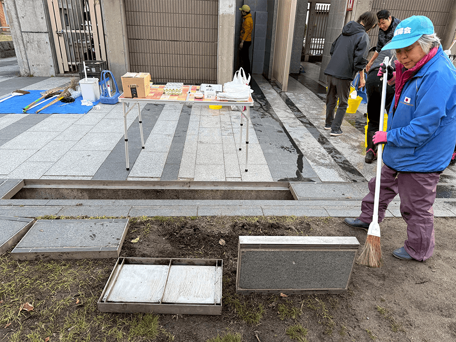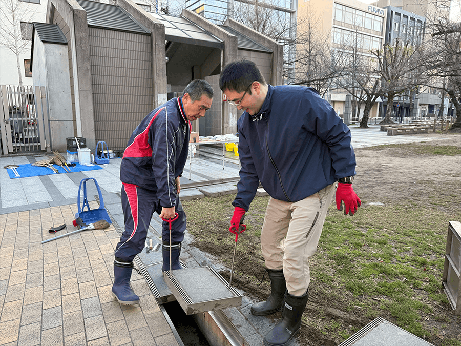トイレ掃除の準備をしたり、公園の外周のゴミを拾ったり、開始時間になるまでは各々が思い思いの活動をしながら過ごします。