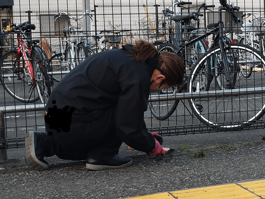 朝夕はまだ肌寒い季節ですが、雑草が少しづつ生えはじめてきました。駅東口周辺の除草を実施、根を張る前だったのでさっと草取りができました。