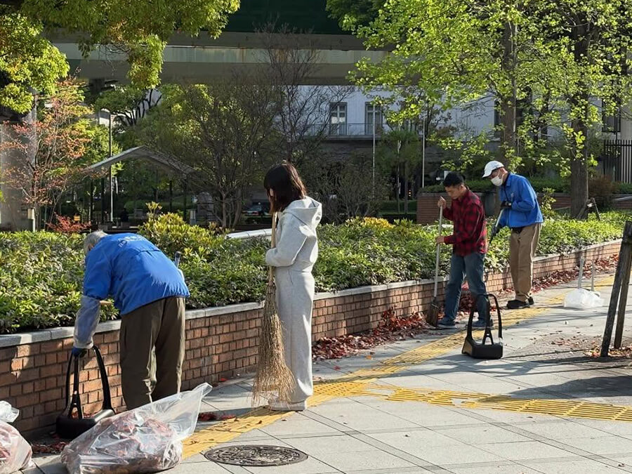 前回の引き継ぎ: 毎日新聞前は、前回の草刈りのおかげで掃き掃除がスムーズに!見違えるほど綺麗になりました。