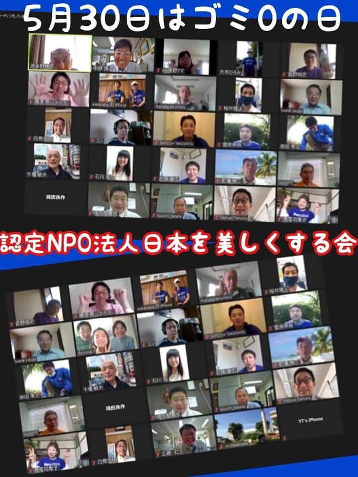 5月30日は「ごみゼロ運動」の日で、例年全国一斉に掃除を行います。今年は、各自が一人掃除をする選択肢もありましたが、鍵山相談役の「百人の一歩」の言葉もあり、「やっぱり、道友は集まって繋がろう」と、ZOOMを使ったオンライン掃除会を考えました。日本を美しくする会で、初めての試みです。