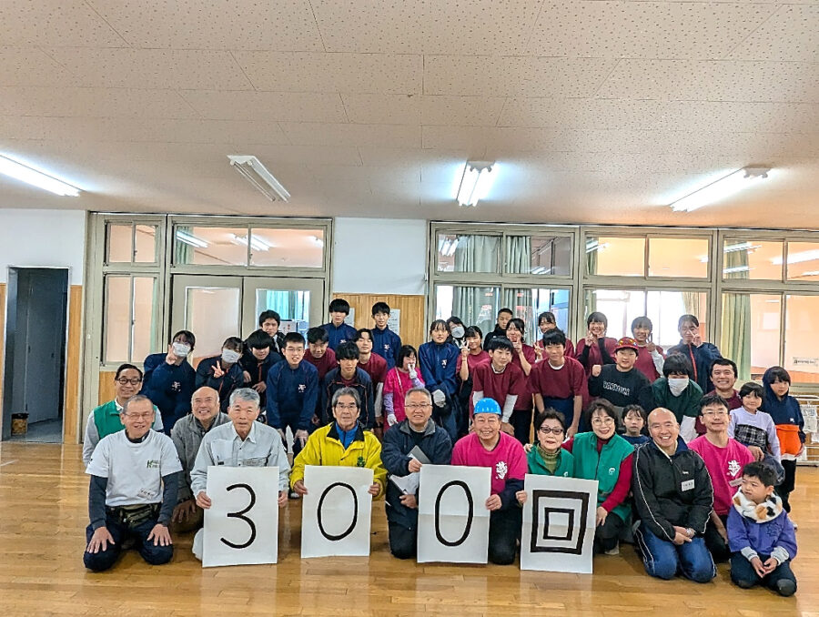 5年目に隣の江田島市の学校でトイレ掃除を始めました。2018年3月、第200回記念大会。