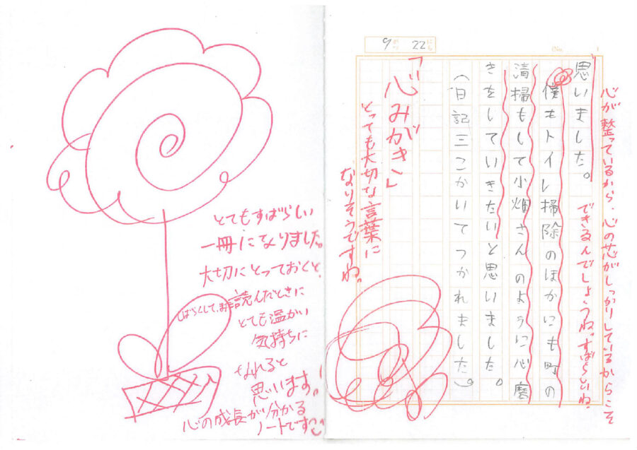 新しいこの活動を通して、今までトイレそうじは、汚いしくさいからやりたくないと思っていましたが、ぼくがやりたくないことを今までは、だれかがやってくれていたことに気がついて、ぼくも、そのような行動に積極的に取り組めるようにしたいです。