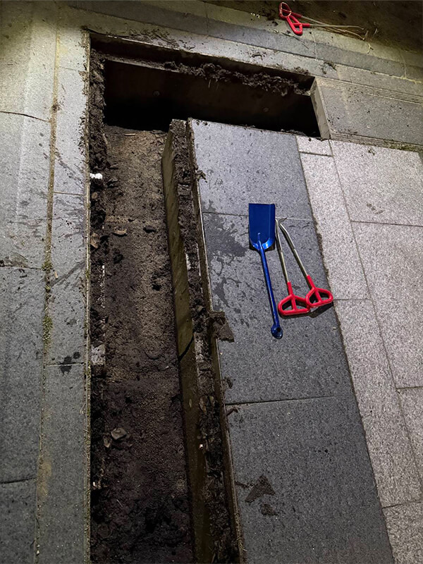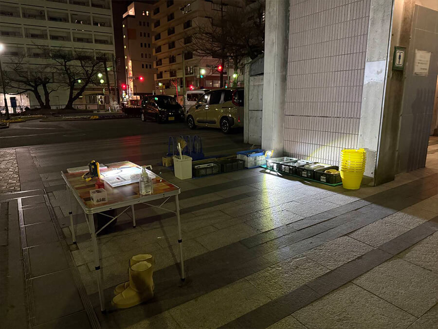 グレーチング班は重たいグレーチングを次々と持ち上げ、黙々と中の泥を回収していました。