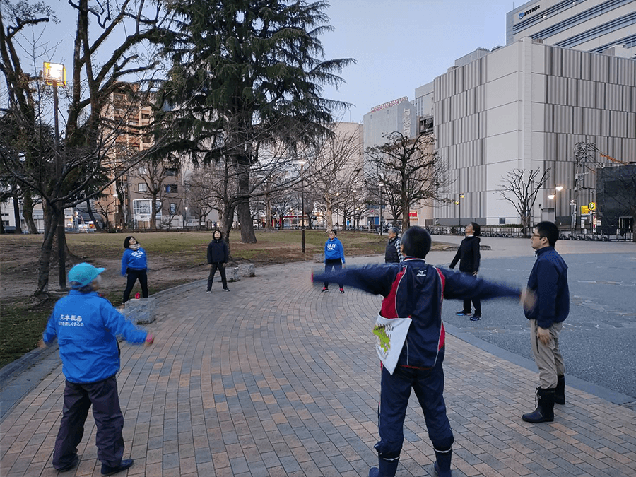 トイレ掃除の準備をしたり、公園の外周のゴミを拾ったり、開始時間になるまでは各々が思い思いの活動をしながら過ごします。