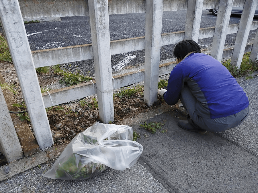 朝夕はまだ肌寒い季節ですが、雑草が少しづつ生えはじめてきました。駅東口周辺の除草を実施、根を張る前だったのでさっと草取りができました。