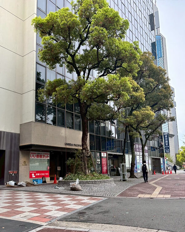 今回は季節柄、まずは楠(くすのき)の落ち葉掃除からスタート。