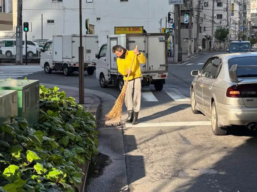 前回の引き継ぎ: 毎日新聞前は、前回の草刈りのおかげで掃き掃除がスムーズに!見違えるほど綺麗になりました。