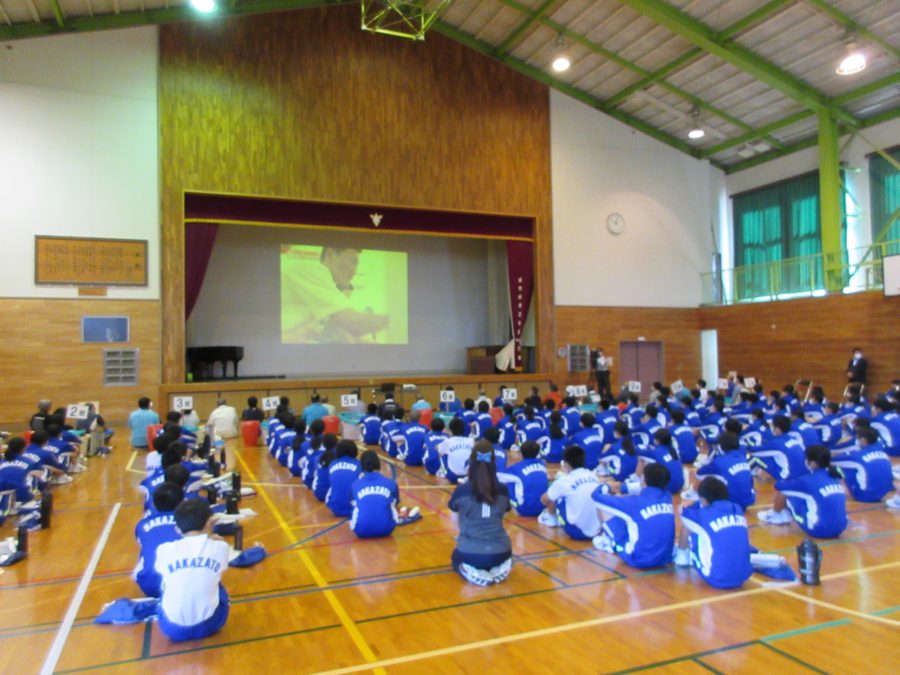 閉会式は、笑顔が体育館に広がりました。学校・教委関係で唯一参加の市教育長は、生徒の心の変化に大きな感動を受け、市内の学校に伝えたい旨話されました。佐世保の会関係者は、来年もやりたいと言われました。