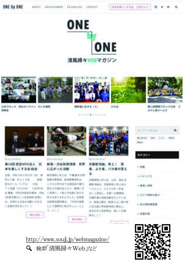 広報部長 中島 セイジ 「清風掃々」Webマガジン版が5月にスタートしました。その名も“ONE by ONE(一つずつ)”。「ひとつ拾えばひとつだけきれいになる」の言葉からのネーミングです。 「日本を美しくする会」が岐阜県大正村でスタートして28年 […]