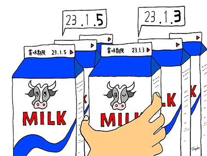 私は、できるだけ賞味期限の短いものから選ぶようにしています。せめて自分が食べる物だけでも、賞味期限の短い商品から買うよう心がけたいものです。
